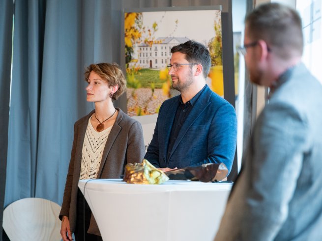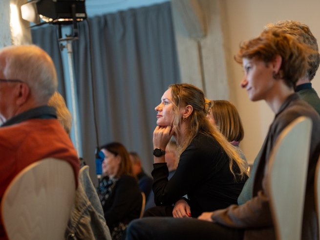 Eine musikalisch-künstlerische Intervention von Juditha Haeberlin an der Geige und Corinna Pregla mit gesprochenen Gedichten schloss den Tag stimmig ab: Klang, Stille und das, was dazwischen liegt. Das gemeinsame Abendessen im Schlossgut Groß Schwansee bot dann den Raum zum Nachhallen – leise und laute Gespräche, lautes und leises Lachen, ein bisschen Weinen vielleicht. Mit und ohne Maske.