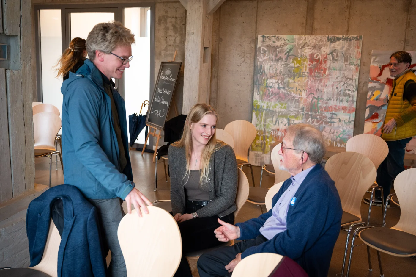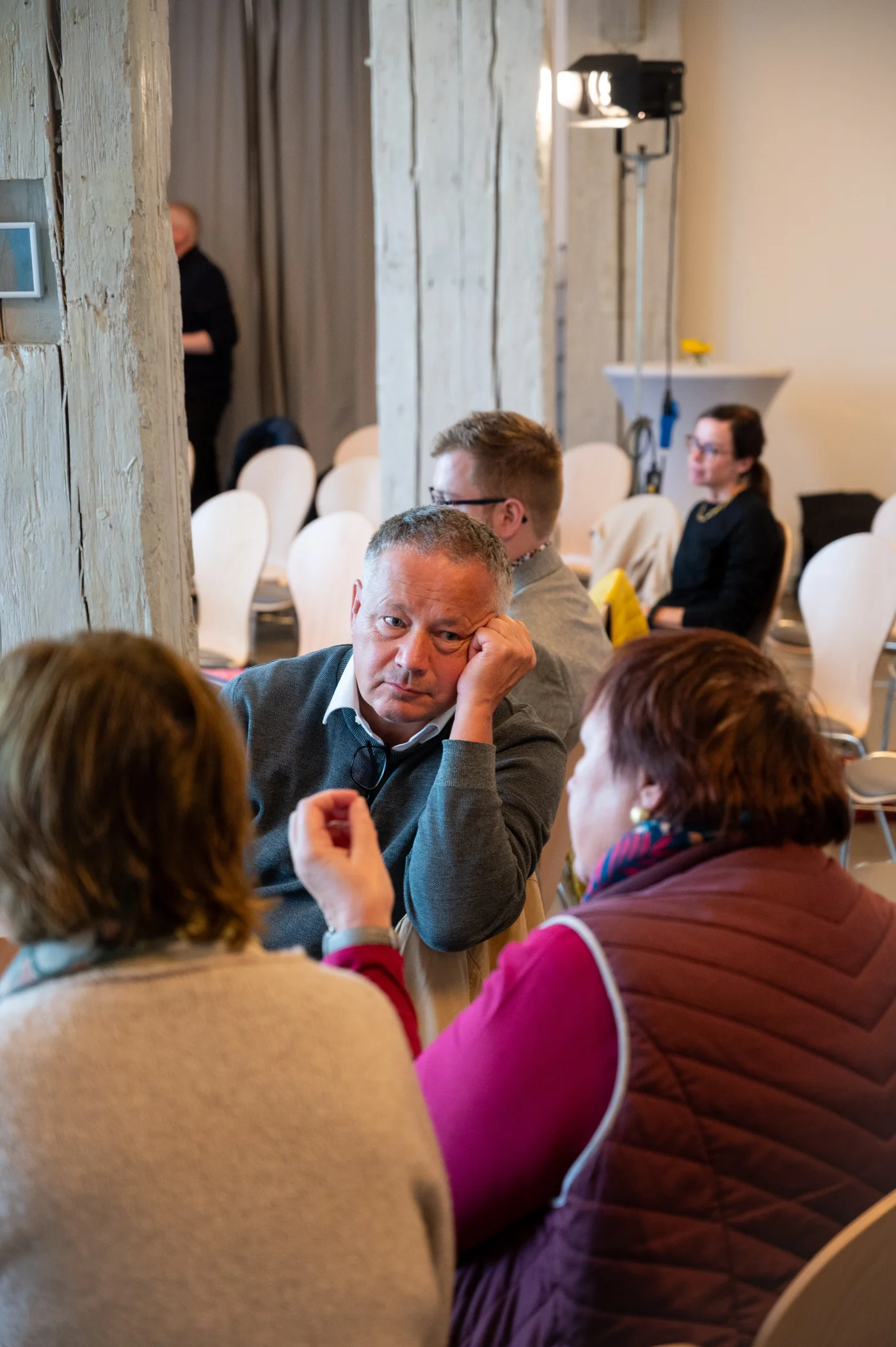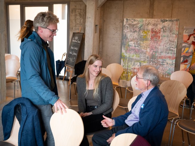 In den anschließenden Werkstattgesprächen entfalteten sich vielstimmige Perspektiven: Dr. Helmut Harr beleuchtete die Begriffsgeschichte von Person und Persona, Prof. Dr. Wolfram Schüffel sprach frei und spontan – unter anderem im Dialog mit Menschen aus Dassow, die er am Vorabend an der Tankstelle für das Symposium gewinnen konnte. Dr. Corinna Pregla sprach in ihrem Vortrag PerSonare über die Psychologie der Stimme, der Sprache, nicht zuletzt auch der Jugendsprache, in der Begriffe wie „Aura“ oder „Alles gut“ eine neue Resonanz entfalten.