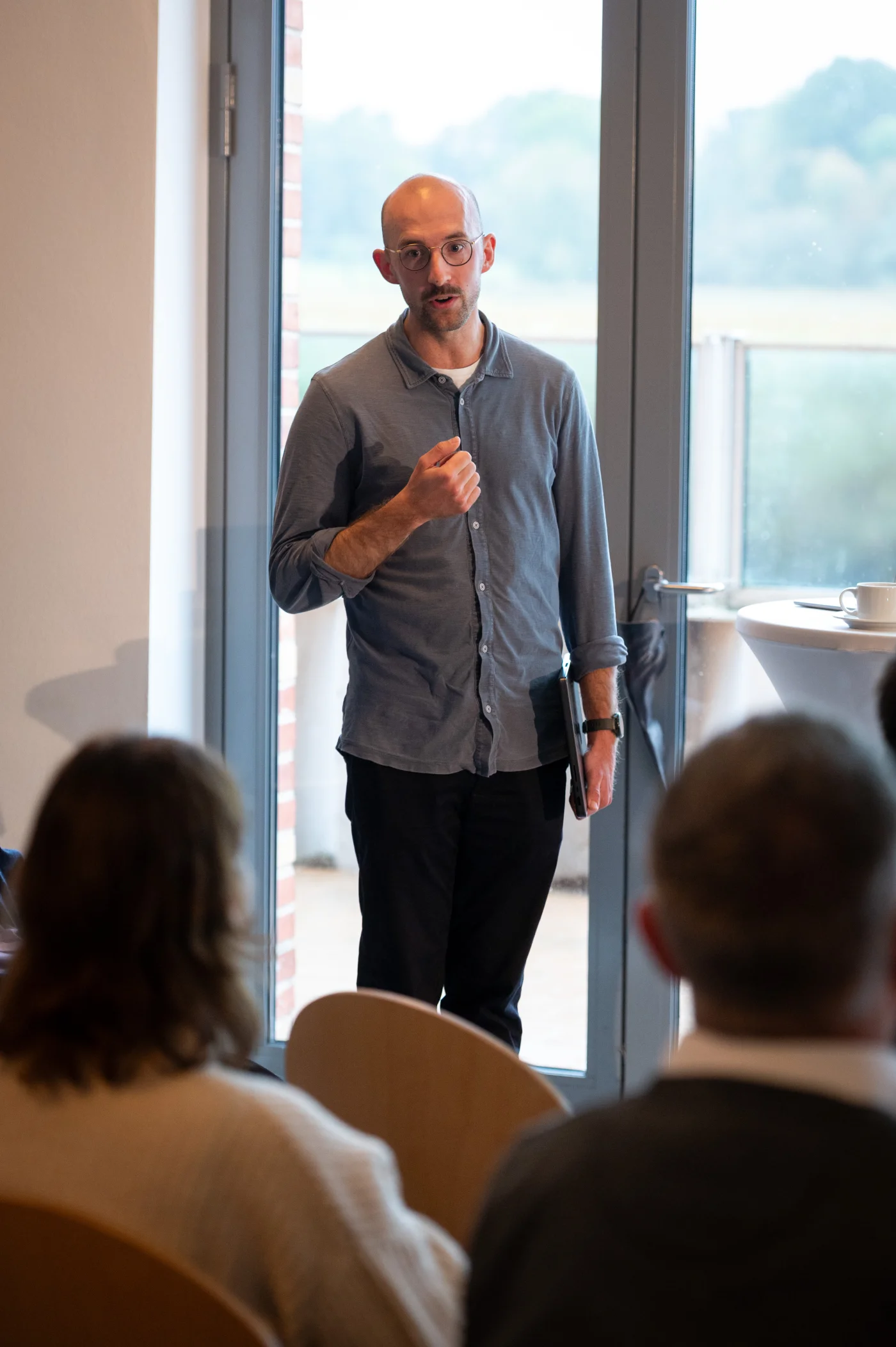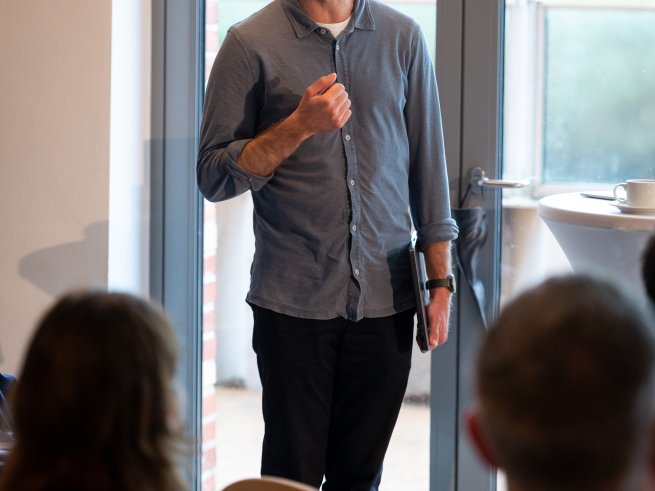 Die Mittagspause wurde zunächst für eine Begehung der Klinik genutzt und brachte dank unseres Küchen- und Serviceteams um Florian Dibbern und Laura Fadel kulinarische Höhepunkte und eine wohlig-angeregte Atmosphäre für weiteren Austausch. Die zweite Hälfte eröffnete Prof. Dr. Gerhard Danzer mit seinem Vortrag Wie wäre es ein Mensch zu sein? über das echte Sich-Zeigen, über Martin Bubers Gedanken zum dialogischen Prinzip – und über die Sehnsucht und vielleicht auch die Notwendigkeit des Menschen, sich selbst als Gegenüber ohne Maske zuzumuten.