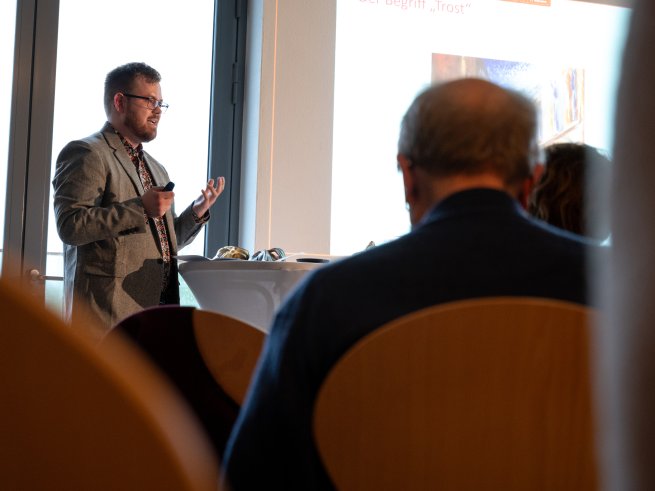 Im letzten Block der Werkstattgespräche näherten sich die Beiträge der therapeutischen Praxis: Dr. Maximilian Huber sprach über die Psychokardiologie heute, Pierre Schleicher über die Begriffsgeschichte von Trost sowie seine Notwendigkeit, aber auch Gefährdung in der kontemporären Psychotherapie. Dr. Christian Schmidt und Gina Rossollek führten in die Wertphilosophie in Diagnostik und Psychotherapie ein – und verbanden damit die Theorie und Philosophie mit zukunftsorientierter Psychotherapieforschung zur Repertory-Grid Methode, die eine empirische Perspektive auf das „Alles gut“ ermöglicht, das manchmal mehr verrät, als es verbirgt.